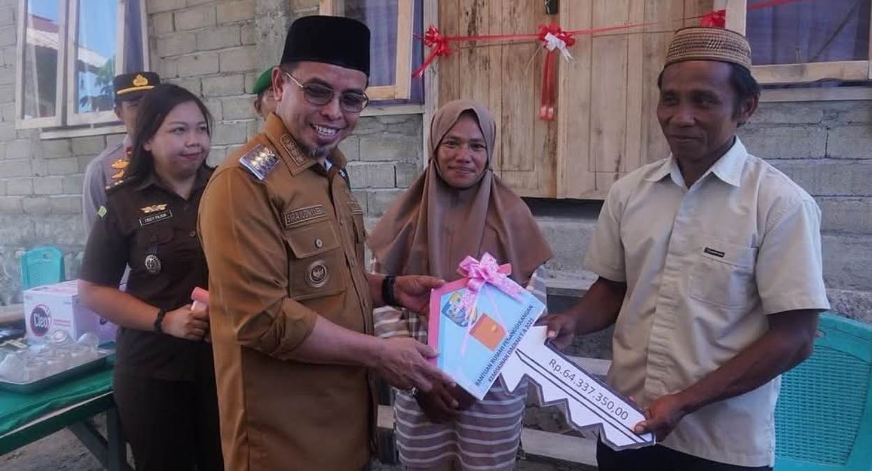 BOLTARA,– Bupati Bolaang Mongondow Utara (Boltara) Dr. Sirajudin Lasena, SE., M.Ec.Dev menyerahkan dan meresmikan rumah layak huni di Kecamatan Sangkub dan Kecamatan Bintauna, Senin (13/10).