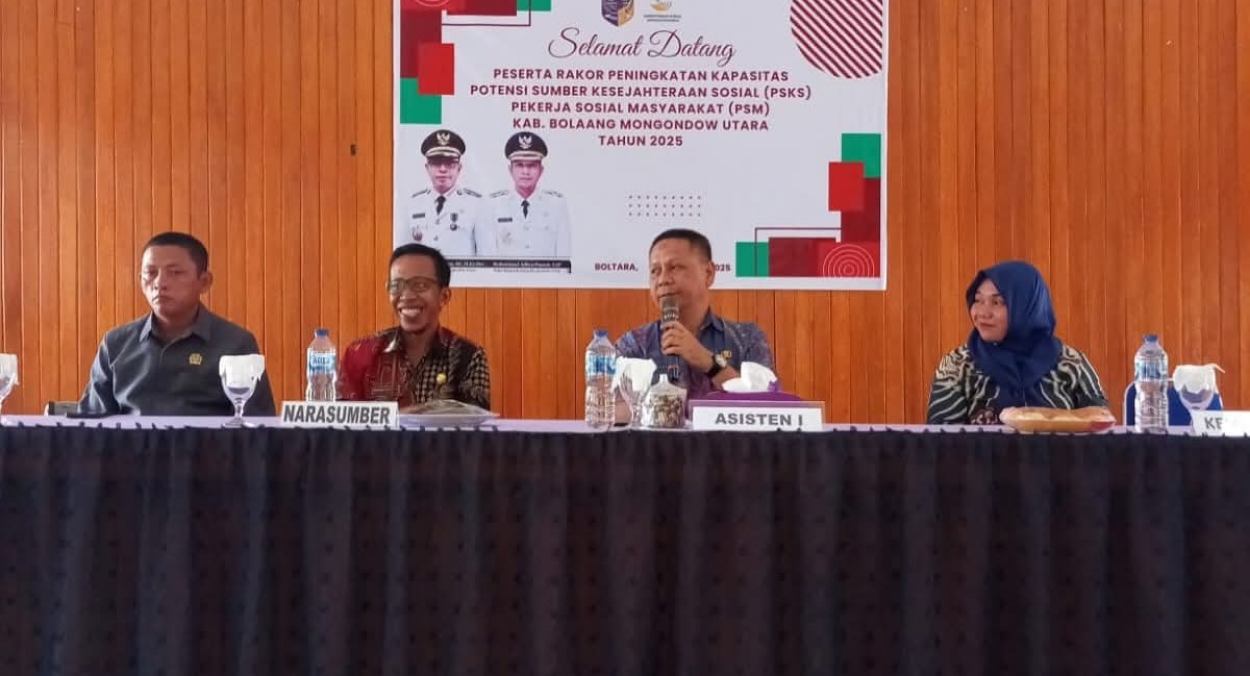 BOLTARA,–Bupati Bolaang Mongondow Utara (Boltara) diwakili Asisten Pemerintahan dan Kesra Rachmat R. Pontoh, SH.,M.Si membuka Rakor Peningkatan Kapasitas Potensi Sumber Kesejahteraan Sosial (PSKS) Pekerja Sosial Masyarakat (PSM) Tahun 2025 di Aula Kantor Kecamatan Bolangitang Timur, Kamis (13/11).