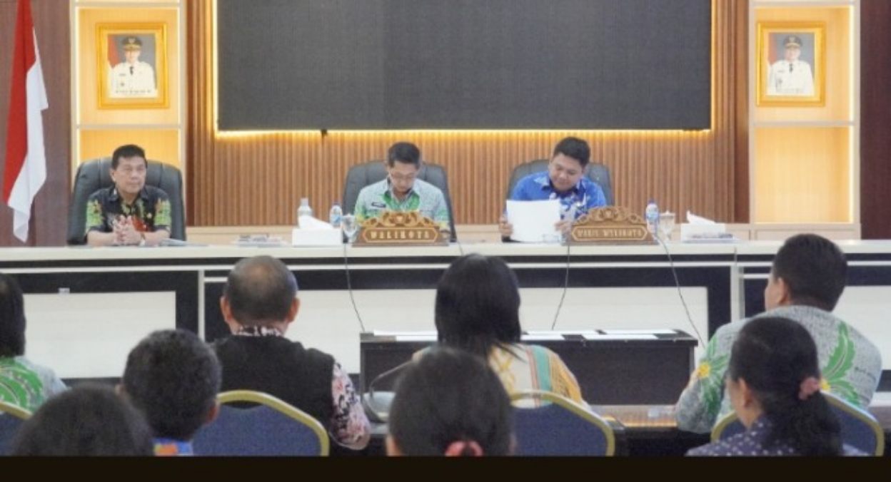 Bitung,- Pemerintah Kota (Pemkot) Bitung menggelar Rapat Evaluasi dan Pengawasan Realisasi Anggaran (EPRA) tahun 2025 di lantai 4 Kantor Wali Kota, Rabu (04/12/25). Rapat dipimpin Wali Kota Hengky Honandar SE didampingi Wakil Wali Kota Randito Maringka serta dihadiri jajaran perangkat daerah.
