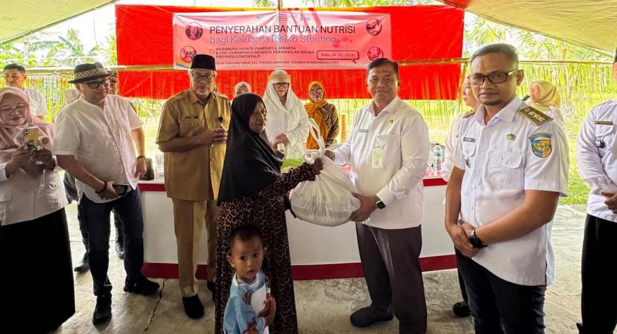 BOLTARA,– Rabu (14/1), Bupati Bolaang Mongondow Utara (Boltara) Dr Sirajudin Lasena SE MEc Dev, diwakili Asisten Bidang Administrasi Umum, Dr. Hi. Abdul Nazarudin Maloho, S.Pd., M.Si., menyerahkan bantuan nutrisi bagi keluarga berisiko stunting di Desa Tuntung Timur, Kecamatan Pinogaluman.