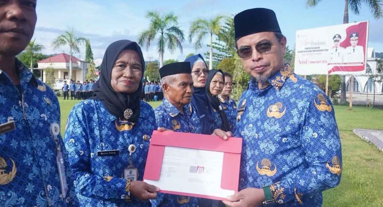 Pada apel tersebut, Bupati Boltara Dr Sirajudin Lasena SE MEc Dev bersama Wakil Bupati, Moh. Aditya Pontoh, S.IP menyerahkan Surat Keputusan (SK) Pensiun kepada sejumlah aparatur sipil negara (ASN) yang telah memasuki purna tugas