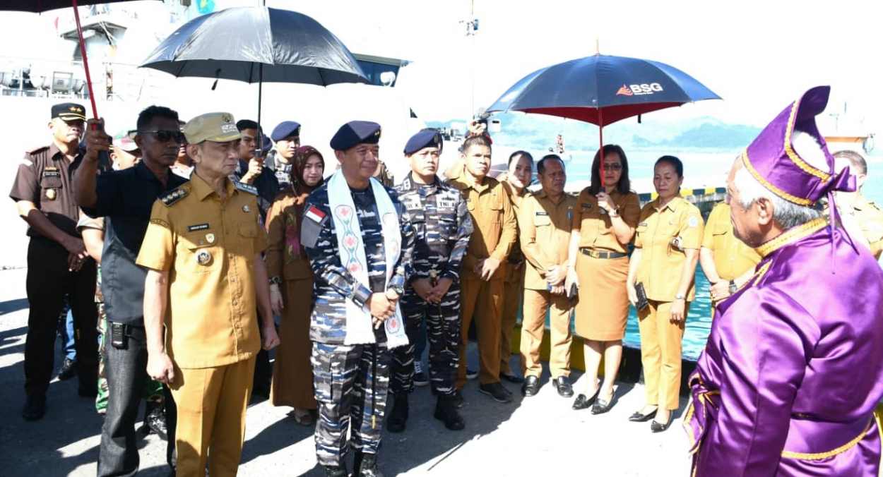 Kedatangan Dankodaeral VIII beserta rombongan, disambut secara resmi oleh Bupati Kepulauan Talaud, Welly Titah, di Pelabuhan Umum Melonguane.