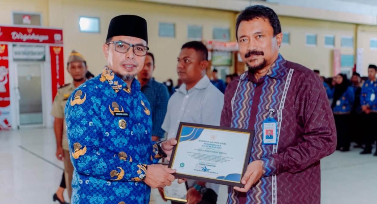 - Penyerahan piagam penghargaan Gubernur Sulawesi Utara kepada Bupati Boltara atas prestasinya sebagai pembina K3 di wilayah Boltara tahun 2025.